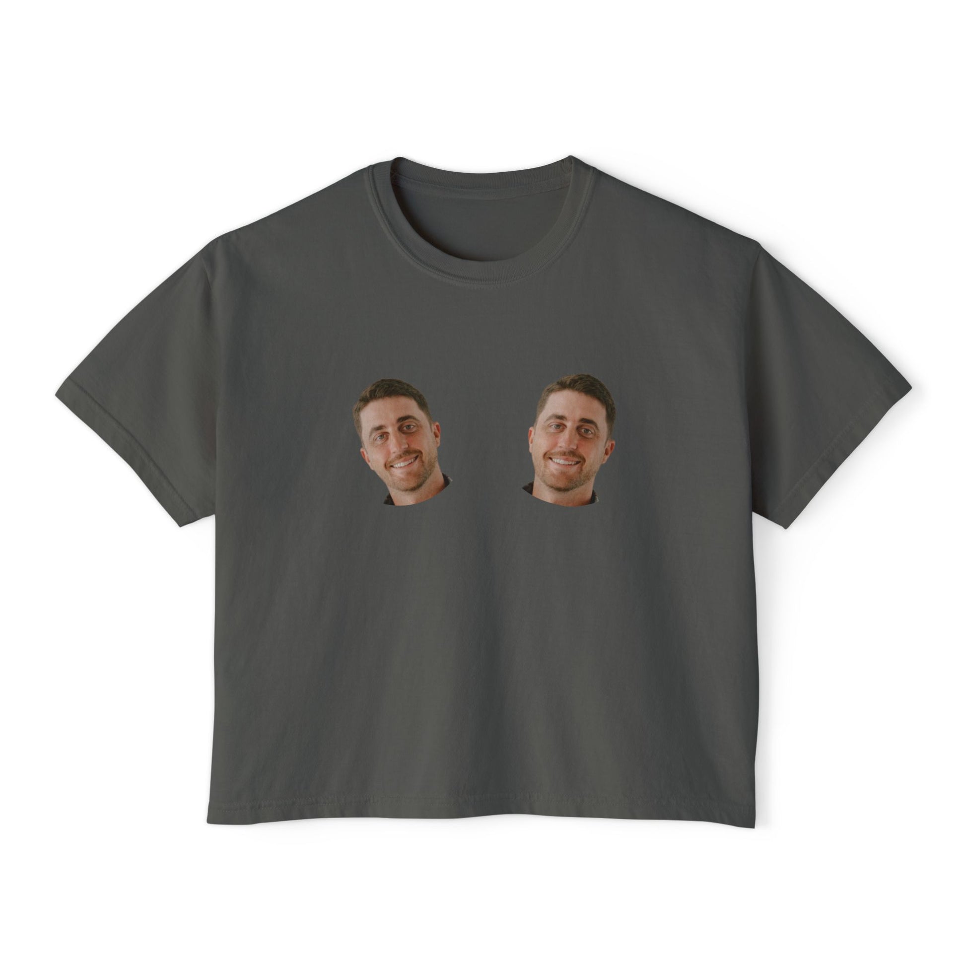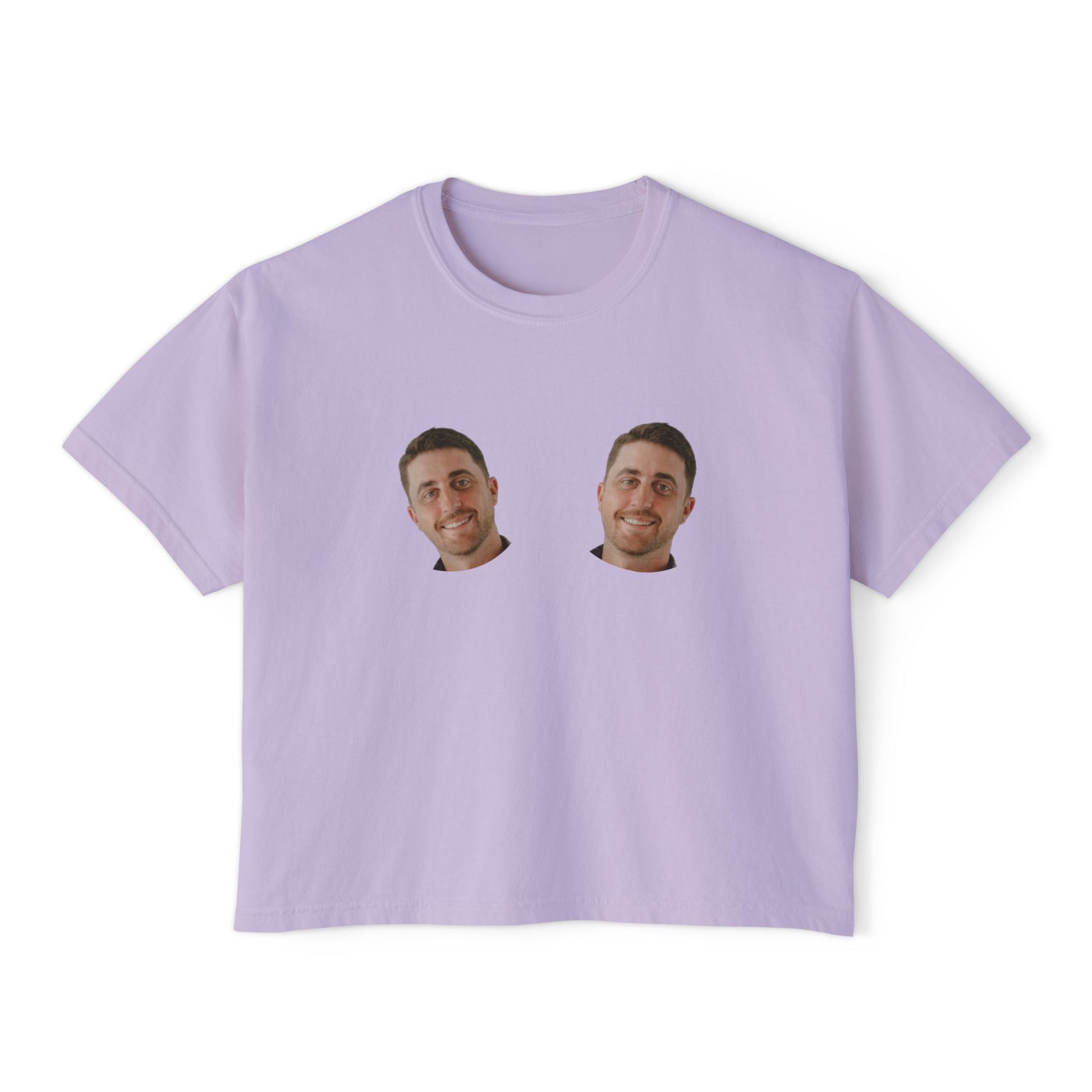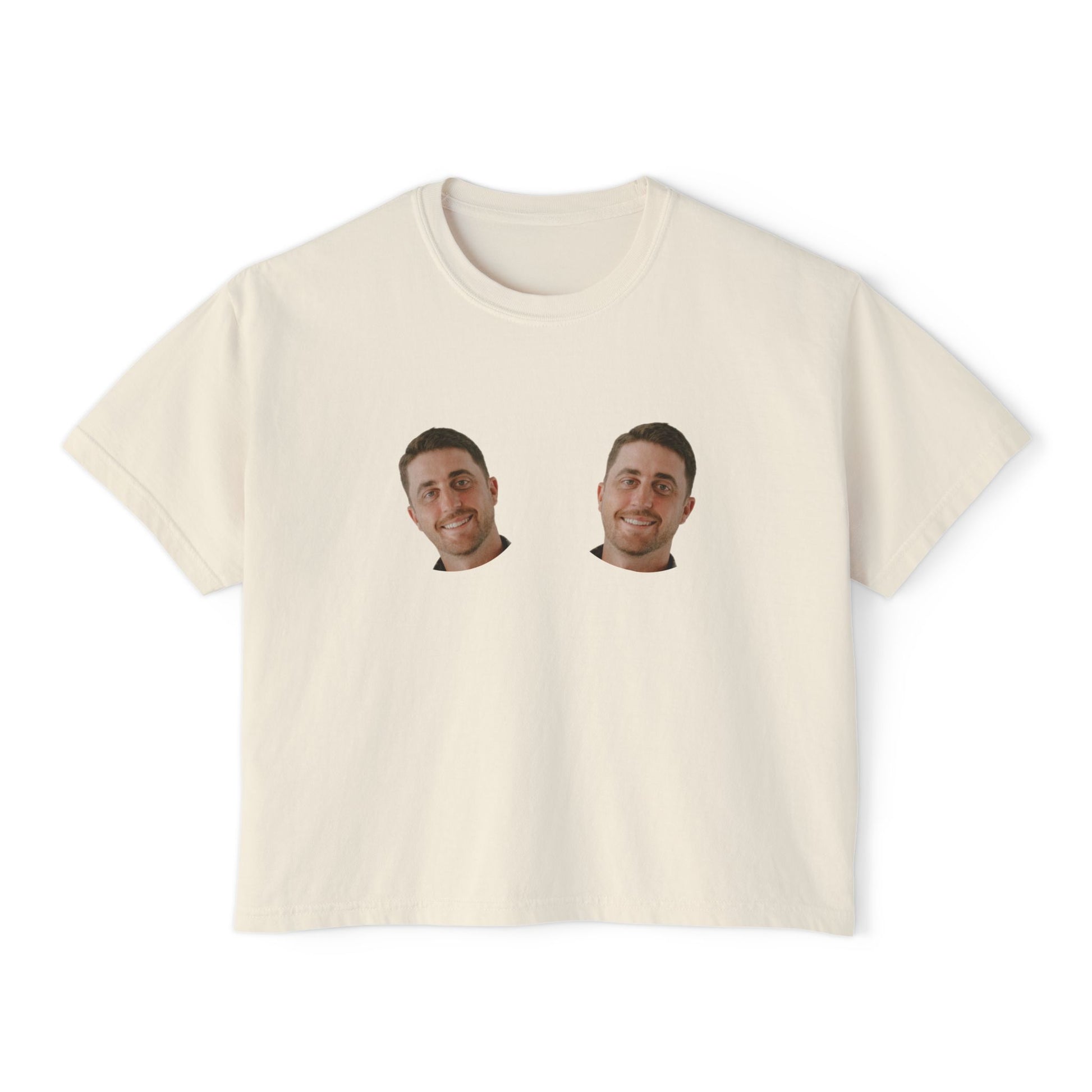 Personalized bachelorette tee with groom face on boobs, funny and custom design, perfect for the bride. This cropped comfort colors tee offers a boxy fit and is great for bachelorette parties and bridal celebrations.