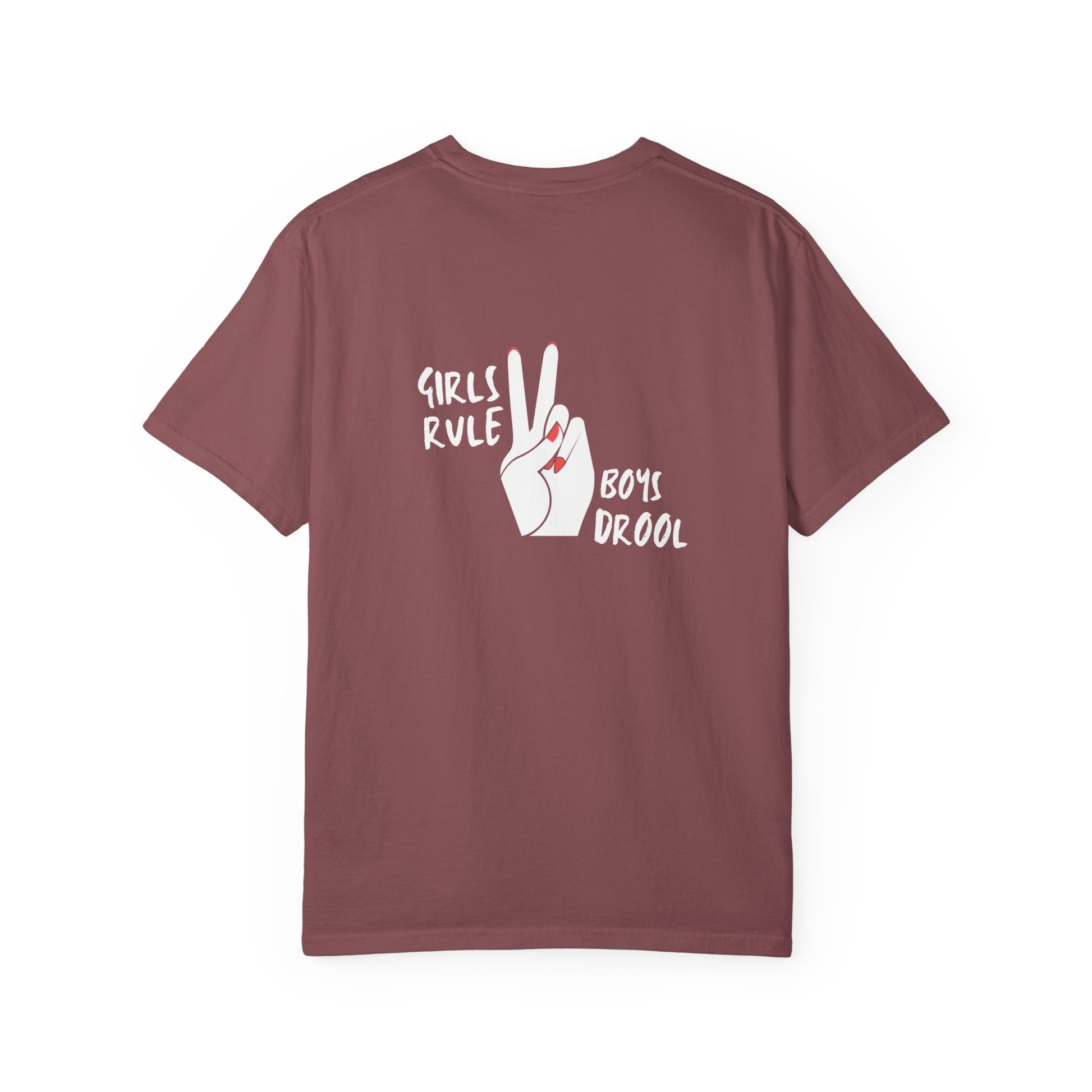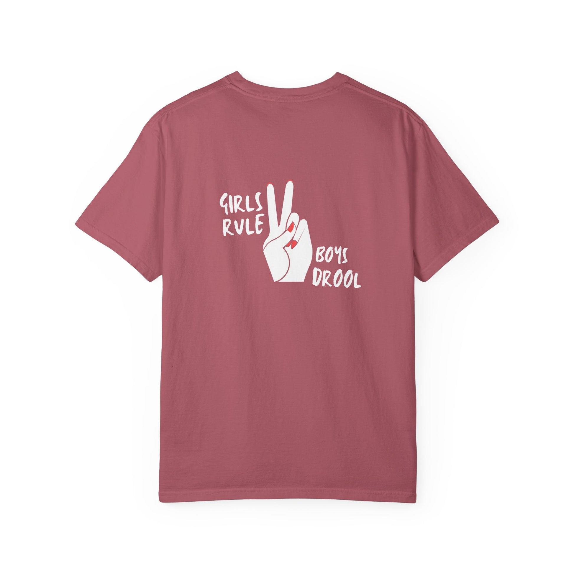 Comfort Colors® "Girls Rule, Boys Drool" Peace Sign Valentine's Day Tee for Women or Girls