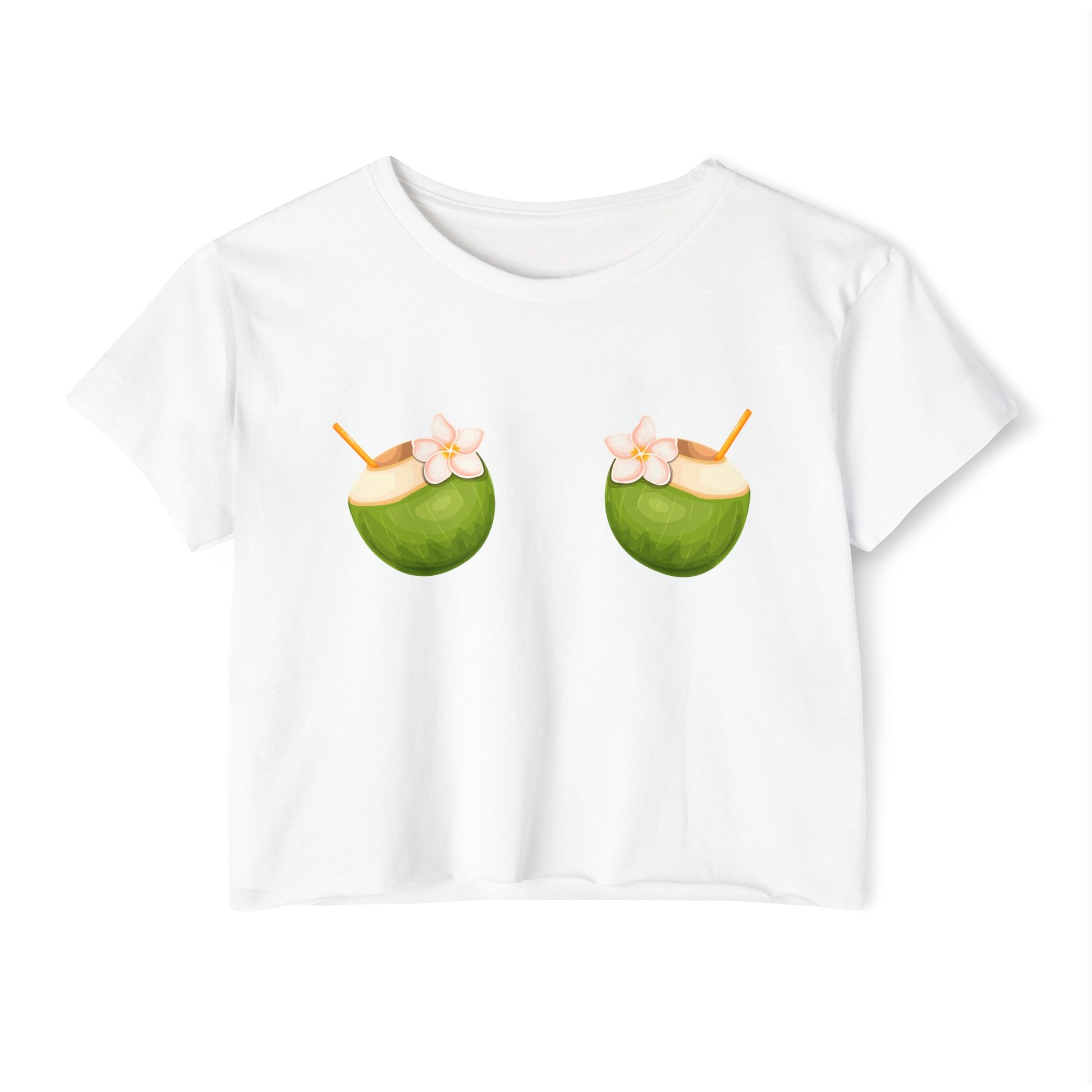 Crop Top, Coconut Bra Beach Vibes White Tee, Beach Days, Girls Trip, Bachelorette Party, Summer Shirt