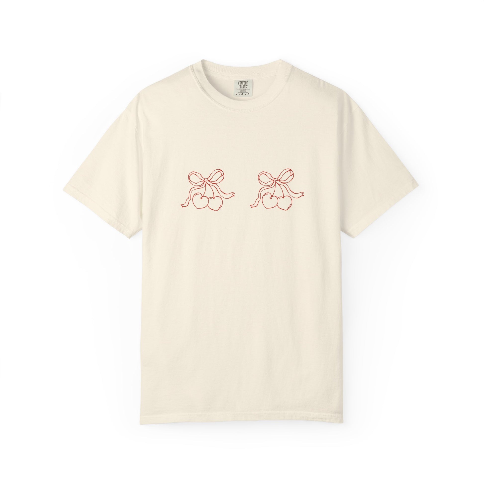 Heart and Cherry Print Oversize T-shirt, Love Focused Comfort Colors Tee, Trendy Women's Top, Fashionable Girly Shirt, Dainty Casual Wear