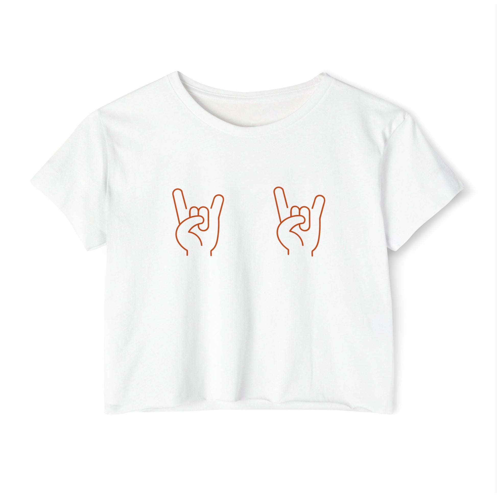Texas Longhorns Women's Festival Crop Top, Hook'em Hand Sign Tee, Gameday Austin Shirt, College Goer Gift, White Crop Top