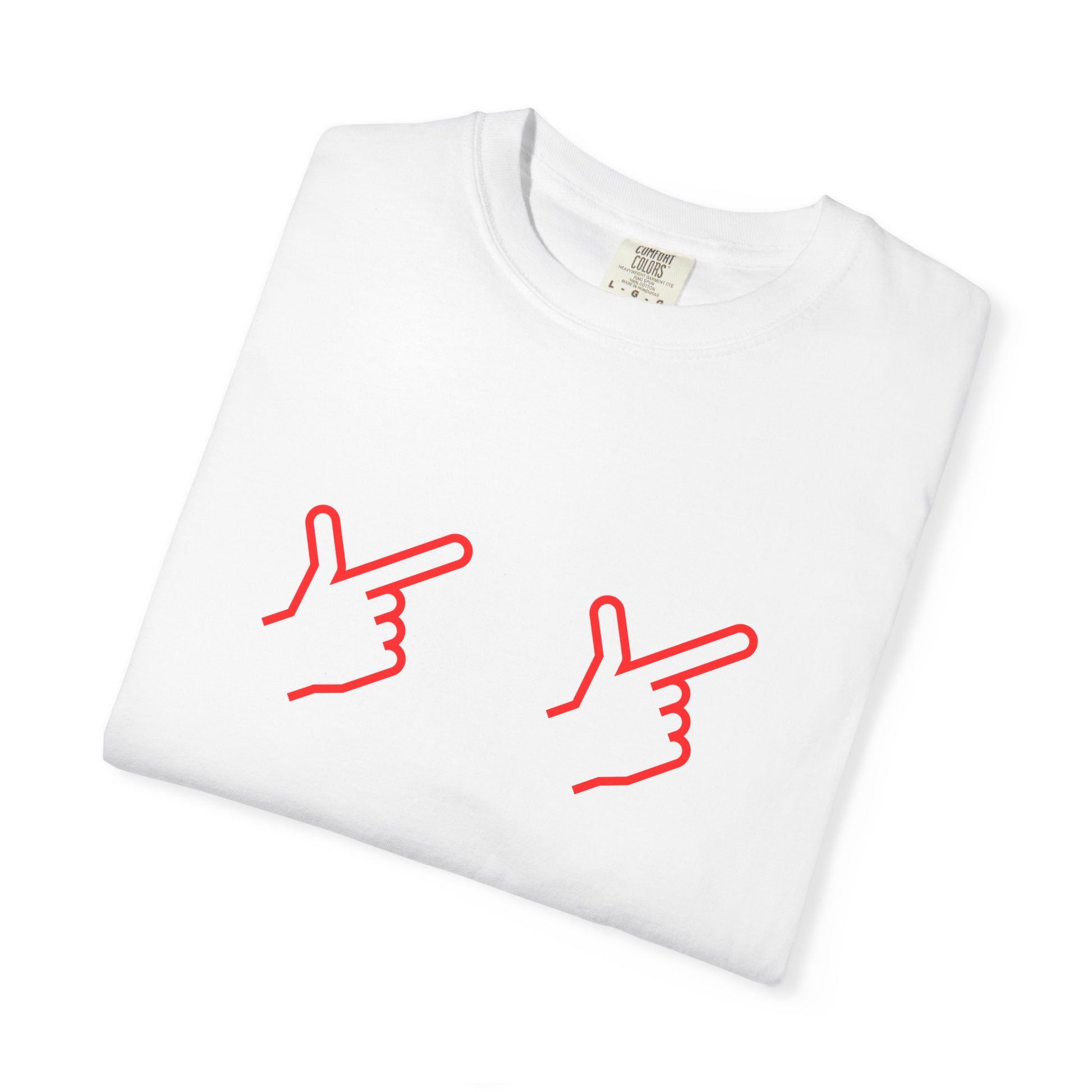Texas Tech Red Raiders Lubbock Texas Guns Up symbol Comfort Colors tee, oversized and perfect for gameday in Lubbock. Ideal for women who are fans of Texas Tech University and love showing their team spirit. Relevant for game days, sports events, and college-themed parties.